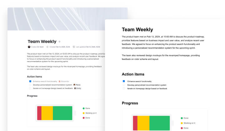 We enhanced live collaboration with live cursors and visible selections, so users see precisely where teammates are working. Top-bar avatars now accurately show who's currently in the doc. Each block also displays its creator and last editor details with timestamps, improving clarity and teamwork.